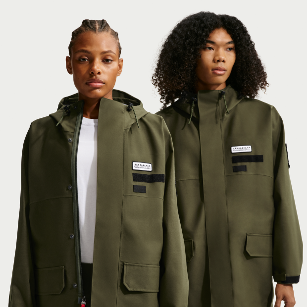Nike 和 Tom Sachs 聯手推出全新系列,適合長時間穿著。Nike x Tom Sachs 男子連帽外套配有內袋、右手腕內側隱藏式磁鐵和袖口上的魔術貼粘扣固定帶。內部除了大幅個性化圖案,還有 Tom Sachs 特製的裝飾串珠。