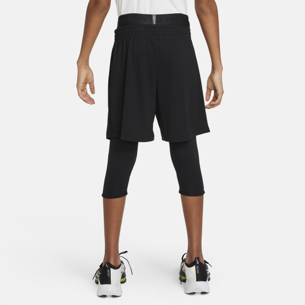 Nike Pro Dri-FIT 大童(男童)3/4 訓練緊身褲採用 Nike Dri-FIT 技術,助孩子在玩樂時保持乾爽舒適,是輕鬆駕馭不同地面的理想選擇。 膝蓋部位經加固處理,無論是粉筆塗鴉還是足球練習,皆可玩樂自如,信心十足。 3/4 長度設計既可單穿,亦可疊加短褲或球隊制服,讓孩子全力以赴地完成每一節賽事,舒適自在。