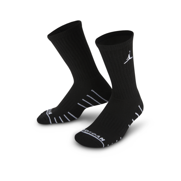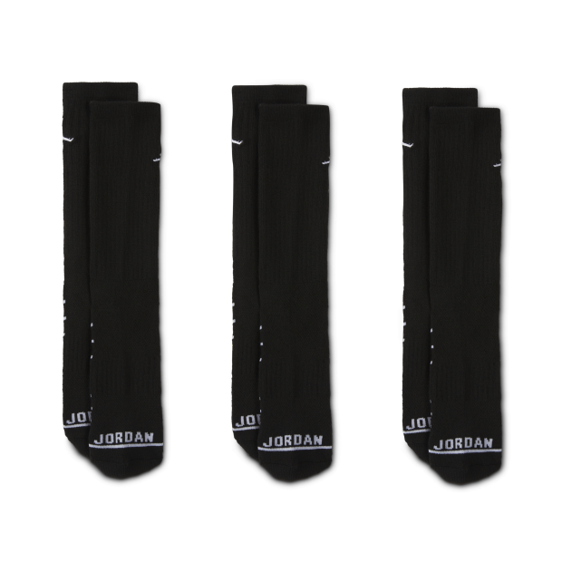 Jordan Striped 大童中筒運動襪(3 對)具備承托效能,可配搭運動鞋穿著。 此運動襪採用疏鬆針織足面,有助足部保持舒適,加上羅紋足弓承托板帶,底部、腳跟和腳尖的加厚設計,有助於跑跳時減緩衝擊力。