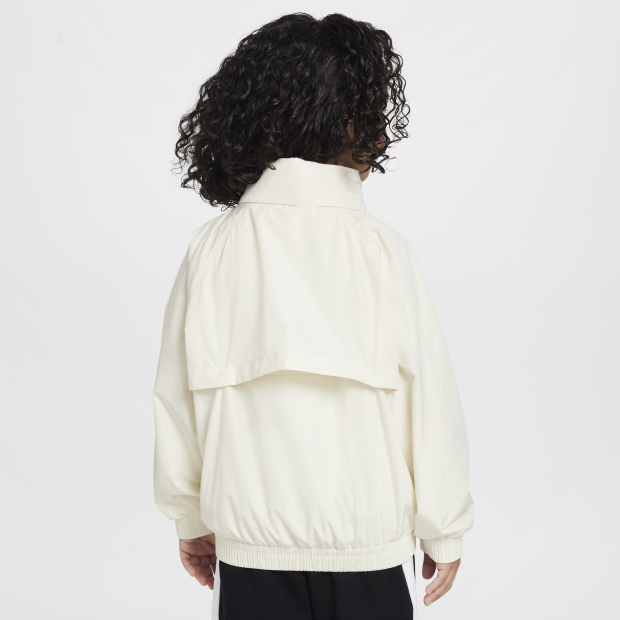Nike Swoosh 幼童梭織外套採用不易撕裂梭織物料,飾有特大標誌,展現對品牌的熱愛。 可收納風帽設計,在你需要時提供出眾包覆效果,不需要時可收納至立領中;拉鍊式開襟設計,方便疊搭。 側縫口袋可收納小物件,彈性袖口和下襬有助穩固衣身。