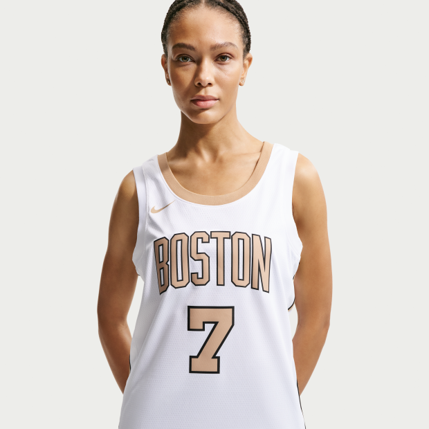 身為塞爾特人,便要刻苦奮鬥、永不言棄、絕不找藉口。這是貫穿過去、現在與未來的不變準則。不變的信念?勝利,與榮耀。在五彩紙屑紛飛中代代相傳的高舉金盃。這款波士頓塞爾特人 (Jaylen Brown) City Edition Nike NBA Swingman Jersey 男子球衣以象徵成功、成就與凱旋的金色點綴,這不僅是球隊 DNA 的本質,更是超越時代的永恆印記。