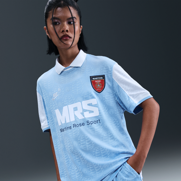 Martine Rose 重新演繹 1990 年代經典足球球衣。 Nike x Martine Rose Sport 男子球衣採用重磅厚實提花針織物料,彰顯不凡格調。 匠心剪裁,衣身著感舒適。