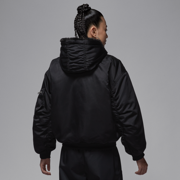 Jordan Renegade Flight Therma-FIT 女子雙面穿外套,以冬裝姿態承襲經典。 採用雙面穿設計,一面為斜紋布物料,另一面則為柔軟人造毛皮。 設有衣袖拉鍊口袋、羅紋袖口與下襬等專屬細節,演繹經典飛行外套風格。