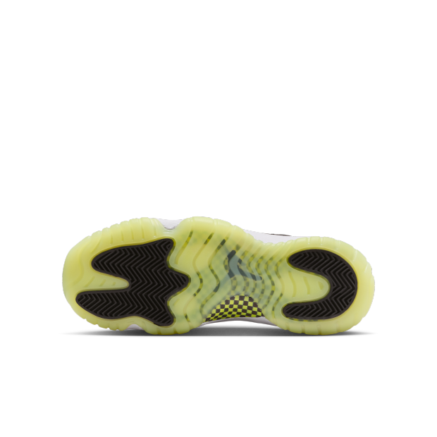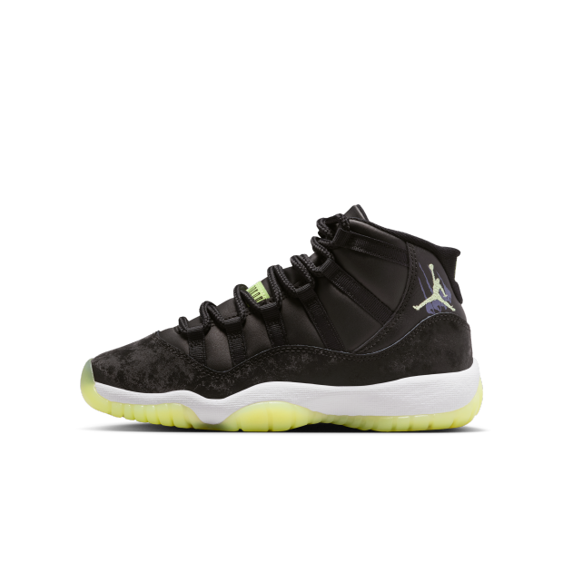 在黑夜中照亮遊樂場。 歷久不衰的 AJ11 煥新 Air Jordan 11 Retro 復刻大童運動鞋登場。採用真皮及合成物料,結合夜光細節,打造俐落風格。 鞋跟 Nike Air 緩震氣墊搭配中底穩定片,讓雙足保持疾速,讓你在投入致勝一球後歸家用餐。