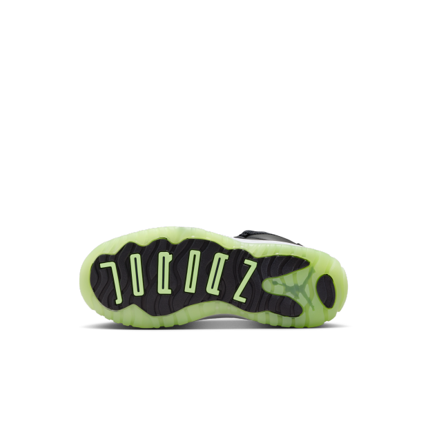 在黑夜中照亮遊樂場。 歷久不衰的 AJ11 煥新 Jordan 11 Retro 復刻幼童運動鞋登場。採用真皮及合成物料,結合夜光細節,打造俐落風格。