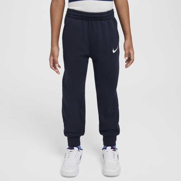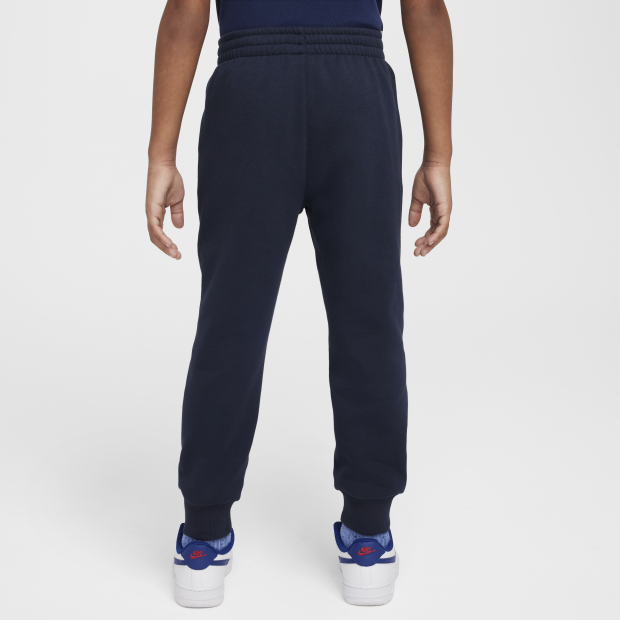 Nike 幼童柔軟毛絨長褲採用柔軟的聚酯纖維混棉毛絨物料,搭配刺繡標誌,是日常必備的穿搭之選。 彈性抽繩腰頭舒適貼合,加上錐形褲管設計和羅紋褲腳,提供舒適穩固的穿著感,突顯孩子腳上的運動鞋造型;插手口袋設計則方便收納小型物品。 搭配任何一款 Nike 上衣穿著,締造完整造型。