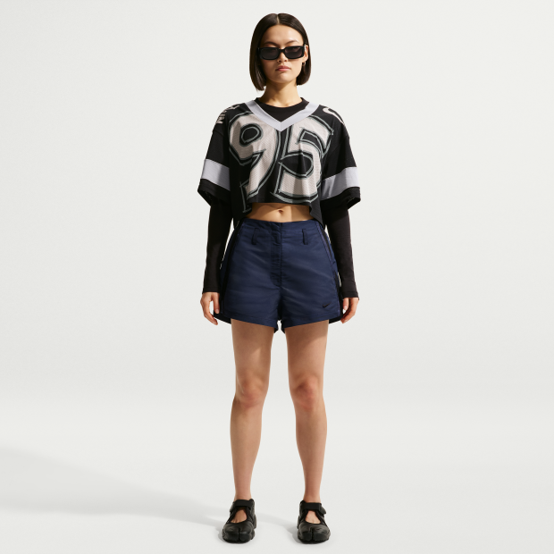 以優雅氣息超越傳統運動風格。Nike Sportswear 女子高腰短褲採用迷人剪裁,配以蕾絲飾邊,造型清新。彈性打孔裡布帶來舒適感,讓你充滿自信。