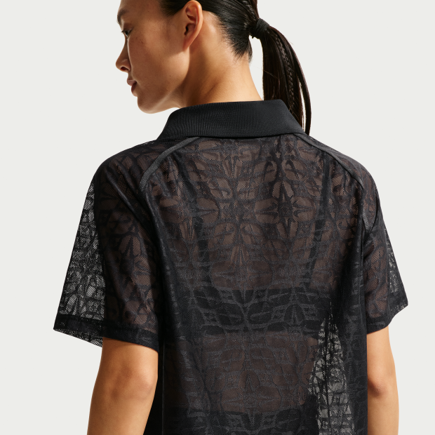 以優雅氣息超越傳統運動風格。Nike Sportswear 女子寬鬆蕾絲翻領針織上衣將 Swoosh 標誌以精緻的蕾絲設計呈現。採用寬鬆剪裁,保留了球衣的傳統風格。