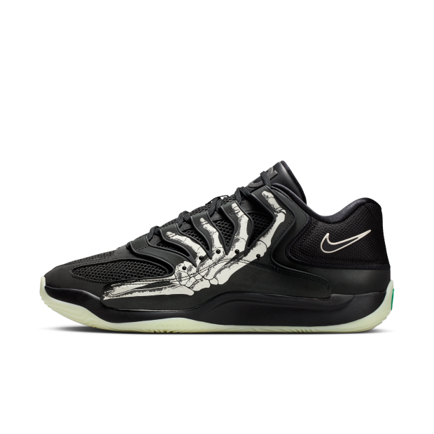 當「死神」再次潛伏球場、搶攻 30 分,殺防守球員一個措手不及。 這款 KD18 "Slim Reaper" EP 男子籃球鞋採用夜光外底,中足鞋籠飾有詭秘的纖細骷髏手設計,向籃球史上這位令人為之恐懼的外線得分王致敬。配置耐穿橡膠外底,提供出色抓地效能。
