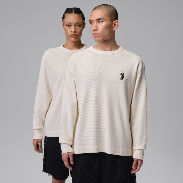 Fragment Design 的藤原浩和 Union Los Angeles 的 Chris Gibbs 旨深耕街頭服飾範疇,我們遂讓他們發揮所長:模糊時尚與運動的界線。Jordan x Union x Fragment 男子長袖上衣以街頭經典長袖運動衫為藍本,採用休閒剪裁,並融入 Fragment、Union 與 Jordan 三方品牌標志性元素。