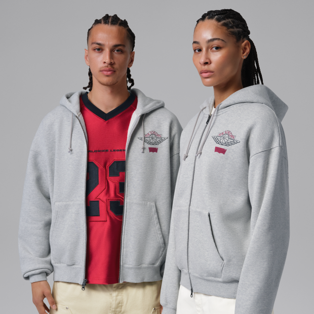傳承設計、籃球元素和雙向拉鍊,穿上 Jordan x Levi's® 男子全拉鍊式連帽衫,隨心打造個人風格。雙重品牌標誌為經典 Levi's® 圖案注入 Jordan 活力。