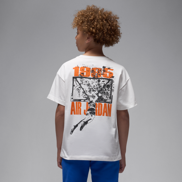 Jordan '85 Shatter 大童T恤採用棉質平織物料製成,配搭經典短袖剪裁、落肩設計與穿感自在的無標籤圓領,伴你打破球場上和生活中的預期。