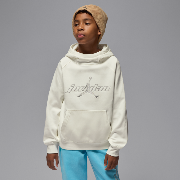 Jordan Mountainside 大童柔軟套穿式連帽衫採用棉質混紡毛絨物料,休閒剪裁搭配加高領口設計,溫暖舒適,打造隨興風格。 這款上衣可搭配 Jordan Mountainside 柔軟毛絨長褲,打造協調舒適的造型,適合冷天健行、戶外跑步或窩在沙發上舒適穿著。