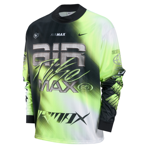 展現摩托風格。這款 Nike Culture of Football Dri-FIT 男子長袖足球球衣採用 Air Max 圖像設計,讓造型更具力量感。