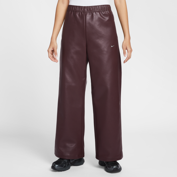 這款 Nike Sportswear 女子中腰長褲採用合成革製成,質感高級,結構挺括。內設輕盈塔夫綢裡布,份外舒適。採用經典剪裁和開放式褲腳設計,營造休閒造型。
