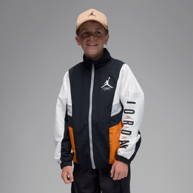Jordan 大童球場風外套採用輕盈梭織物料和 90 年代風格剪裁,兼具復古風範與現代元素。 採用全拉鍊式開襟和落肩設計,剪裁休閒,側邊口袋可收納小型必需品,彈性袖口和下襬穩固貼合。