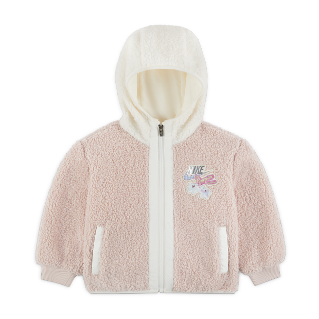 Nike 嬰童奇趣冬季仿羊羔絨外套採用連帽設計和柔軟的蓬鬆仿羊羔絨,搭配天馬行空的紋理布章和標誌刺繡,讓小寶貝在假日和整個冬季都奇趣無限! 全拉鍊式封合設計,易於襯搭,落肩設計則營造休閒舒適的穿著感,如同心愛的毛毯般包裹上身。