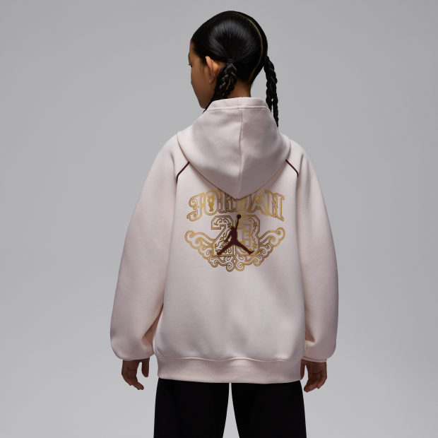 Jordan 新年系列大童針織套穿式連帽衫採用棉混紡針織物料製成,並加入金屬色圖案,與你舒適慶新禧,口袋設計方便存放隨身小物。配搭任何 Jordan 新年系列下裝,締造完整造型,在節慶及其他場合穿著。