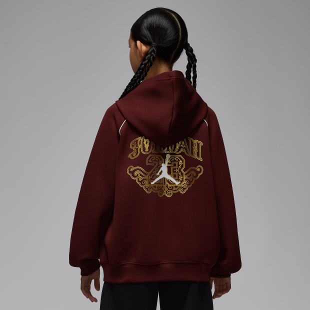 Jordan 新年系列大童針織套穿式連帽衫採用棉混紡針織物料製成,並加入金屬色圖案,與你舒適慶新禧,口袋設計方便存放隨身小物。配搭任何 Jordan 新年系列下裝,締造完整造型,在節慶及其他場合穿著。
