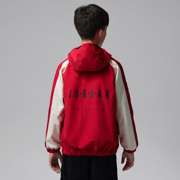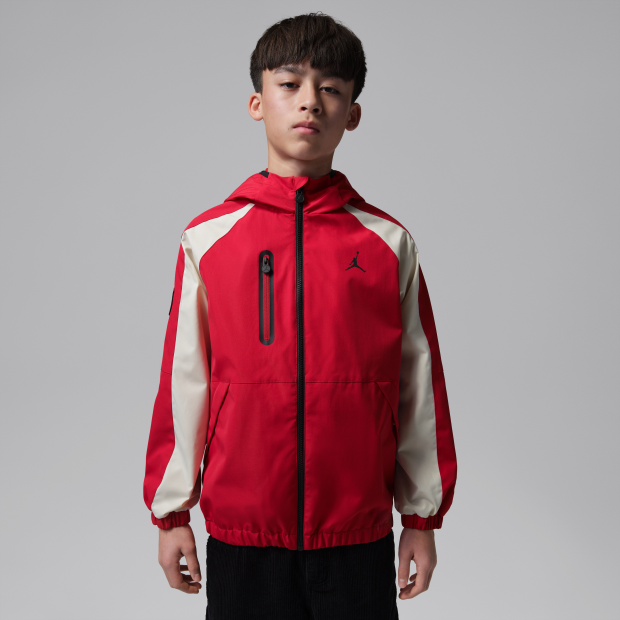 Jordan 大童拼色戶外外套採用梭織物料,結合毛絨裁片裡布,讓你在冷天暢享溫暖。採用休閒剪裁與全拉鍊式開襟,側邊口袋可收納小型物品,胸口拉鍊口袋則可妥善收納小型物品。連帽設計幫助提升包覆效果,彈性袖口和下襬穩固貼合。