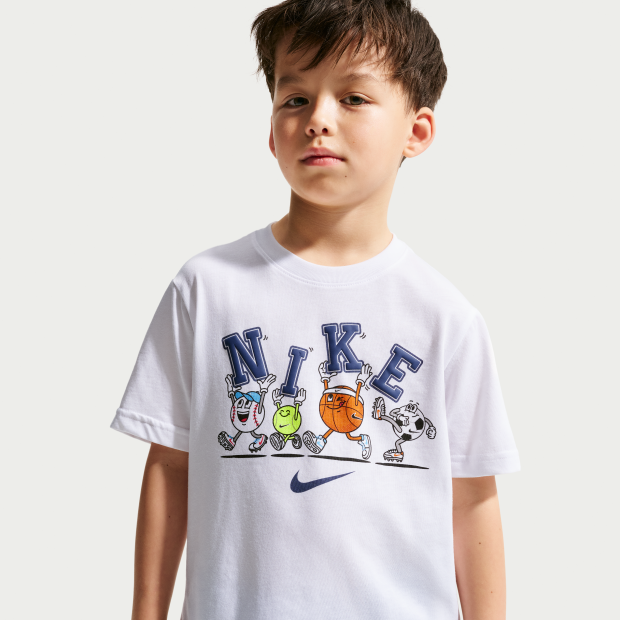 活躍小小運動員無論打籃球、棒球、足球或網球,都能輕鬆穿上這件柔軟平紋針織 Nike Multi Sports Ball 幼童T恤。經典剪裁,活動自如;無標籤圓領設計,舒適自在。