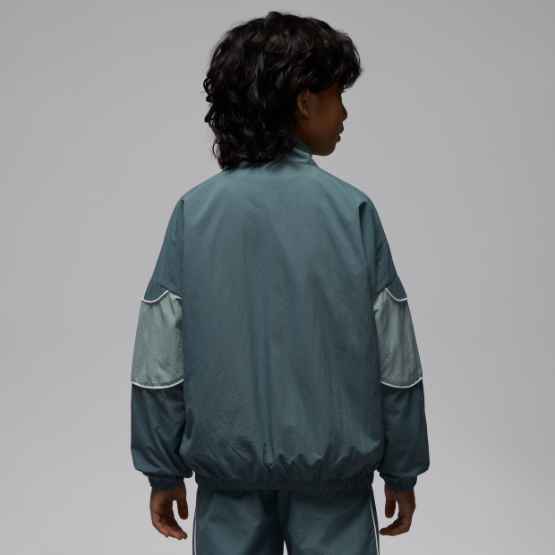 這款 Jordan 大童運動外套以現代風格演繹經典運動服飾,風格大膽,舒適易搭。採用全拉鍊式開襟設計,方便疊搭;落肩設計塑造輕鬆著感,而彈性袖口和下襬則有助穩固貼合。搭配 Jordan 運動褲,塑造運動風格統一的造型,亦可作為日常出行的便捷選擇。