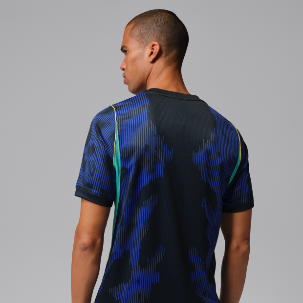 這款醒目的 2026 賽季巴西隊客場球迷版 Jordan Dri-FIT 男子足球球衣既美麗又充滿威脅感。如同毒箭蛙向獵物發出警告,這件復刻版球衣提醒著其他球隊:與巴西交鋒,後果自負。