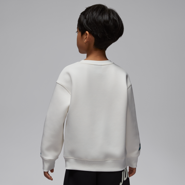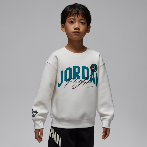 Jordan Dynasty Interlock Flight 幼童圓領運動衫採用柔軟針織物料製成,並飾有標誌圖案,與你的 Jordan 球鞋相得益彰,落肩設計令穿著更舒適。配搭 Jordan Dynasty Interlock 長褲,打造舒適完整造型,適合全天候穿著。
