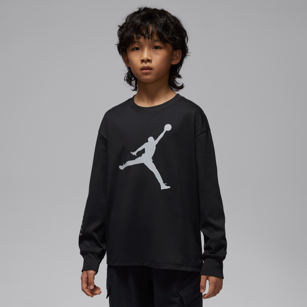 大膽反光圖案設計,這款 Jordan 大童反光元素長袖T恤為日常生活設計。柔軟棉質平織物料結合無標籤圓領,舒適貼身;長袖羅紋袖口帶來輕盈包覆。