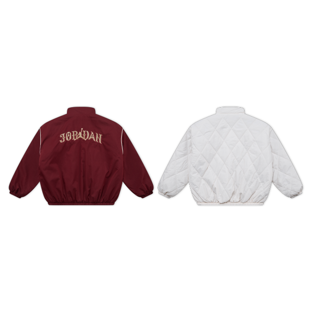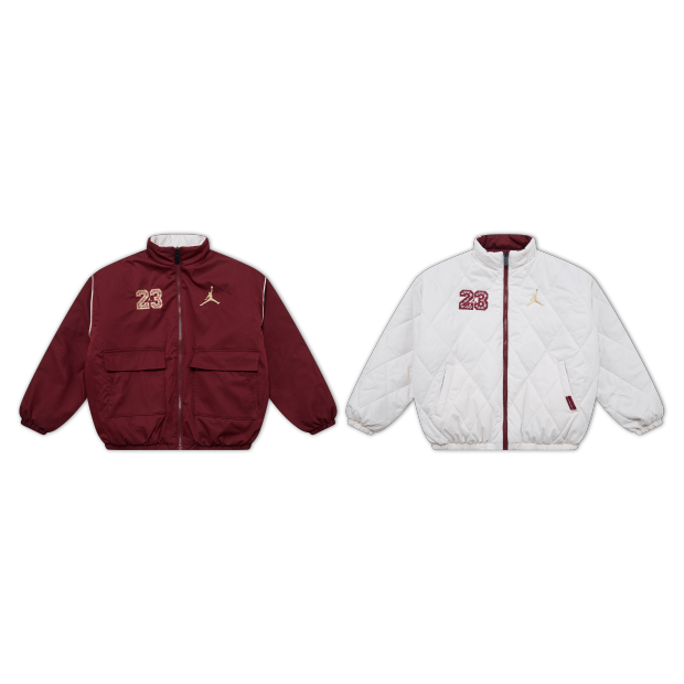 Jordan 新年系列大童雙面穿絎縫外套讓你以兩種風格慶祝新年。採用休閒剪裁及全拉鍊式開襟設計,落肩設計塑造匠心剪裁,兩面均飾有刺繡,提升整體外觀。一面採用翻蓋口袋設計,並設有隱藏式按扣,可妥善收納現金、鎖匙或手機等小型必需品;另一面則設有插手口袋,方便儲物。