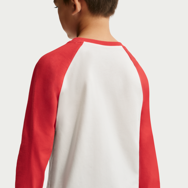 Nike Sportswear 新年款幼童長袖連肩袖T恤採用棉質物料製成,並加入慶祝馬年的圖案,讓孩子全年都能慶祝新年,而無標籤圓領設計則帶來舒適貼合的穿著體驗。配搭 Nike 新年款下身,全套賀歲造型大功告成。
