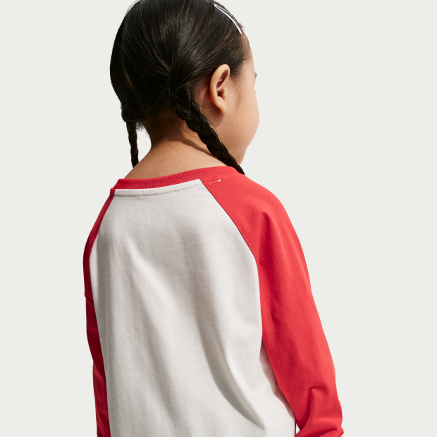 Nike Sportswear 新年款嬰童長袖連肩袖T恤採用棉質物料製成,並加入慶祝馬年的圖案,讓小寶貝全年都能慶祝新年,而無標籤圓領設計則帶來舒適貼合的穿著體驗。配搭 Nike 新年款下身,全套賀歲造型大功告成。