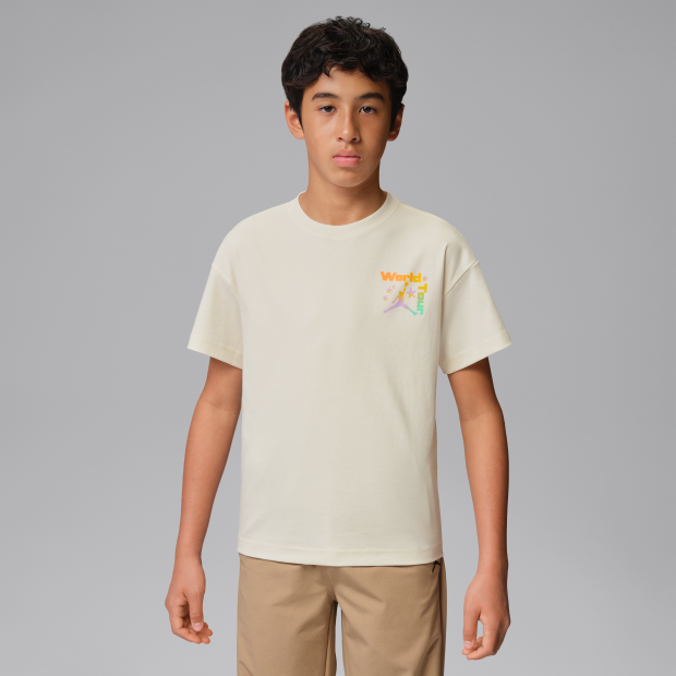 Jordan World Tour 大童T恤簡約經典,是衣櫃必備的單品,採用棉質平織物料製成,配搭經典短袖版型和圓領設計,帶來舒適自在的穿著體驗。