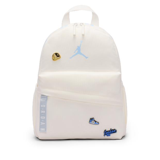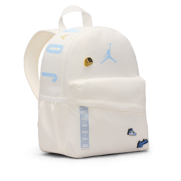 Jordan 迷你徽章背包看似外型細小,但實際上容量十足。背包採用有趣徽章,帶來更個人化的外觀,主間隔空間寬敞,水瓶側袋可放飲料,正面拉鍊口袋有助收納小型物品,方便快速取放。