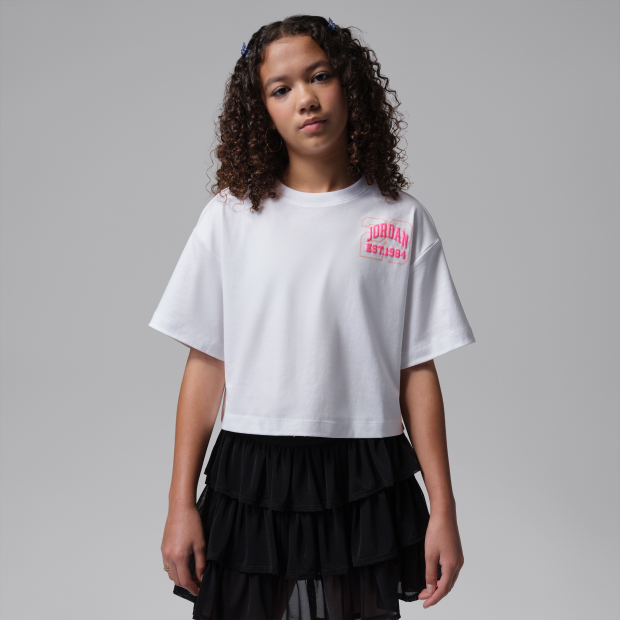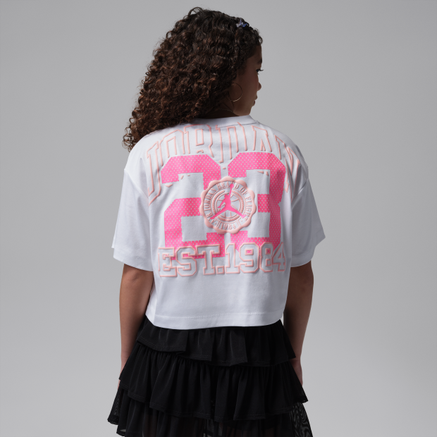 Jordan Secret Garden 大童(女童)學院風T恤採用棉質平織物料製成,結合短款剪裁,加入紋理圖案,配搭圓領設計,帶來舒適自在的穿著體驗。