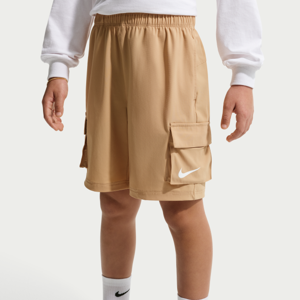 這款 Nike Sportswear 幼童工裝短褲觸感順滑俐落,更富彈性,讓孩子在玩樂時活動自如。彈性腰頭帶來舒適貼合感,配合多口袋設計,方便孩子在探險時攜帶小物件。配搭任何 Nike 上衣穿著,打造休閒、協調的造型。