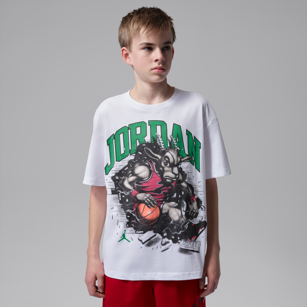 穿上這款引人注目的 Jordan The Goat 大童T恤,克服任何障礙,採用棉質平織物料製成,配搭圓領設計,穿著自在,落肩設計則帶來舒適休閒的剪裁。